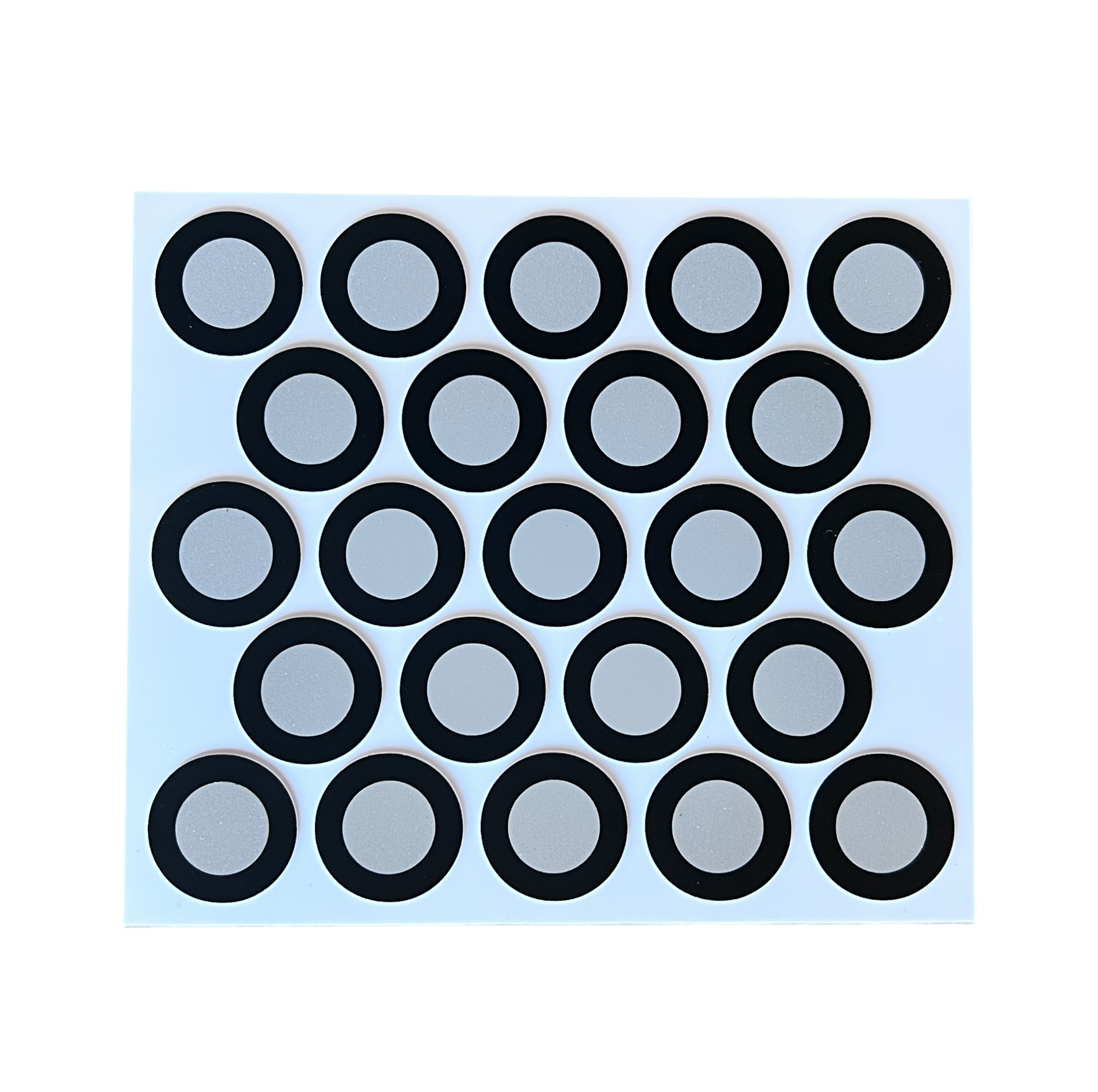 Our uncoded, retroreflective targets are cut with high precision. This makes them easy to remove from the backing paper and gives them excellent concentricity.